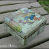 Sonra kahverengiye boyadım ve üzerine çatlatma medyumu sürüp kurumasını bekledim, daha sonra bebek mavisi ve buğday sarısı renklerinin karışımıyla oluşturduğum rengi fırça ile kutuya sürdüm, yalnız bir kere boya sürdüğünüz yerin üzerinden ikinci kez geçmemeniz gerekiyor,boyayı sürerken çatlaklar oluşuyor zaten.